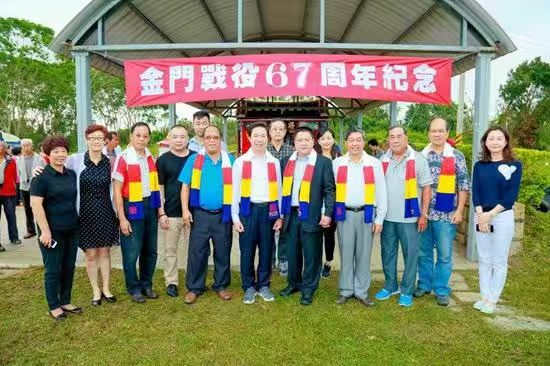 图为2016年10月24日,金门战役67周年之际,山东省齐鲁样板沂河源乡村振兴示范片区发起人、山东财经大学乡村振兴学院院长、东方汇泉金融控股集团董事局主席、北京东方君公益基金会会长董方军在金门岛和两岸友好人士共同举行纪念活动