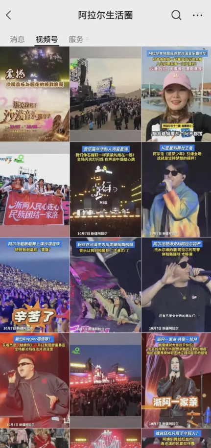 活动期间,浙江广电FM93交通之声,一师融媒体中心、七师融媒体中心、八师融媒体中心、九师融媒体中心、十二师融媒体中心、十四师融媒体中心、阿克苏融媒体中心等融媒体联合打造出现象级宣传矩阵,以音乐嘉年华为依托,大力宣推一师阿拉尔市城市品牌和特色,大屏+小屏、视频、音频、户外广告、流动宣传车层层引爆,全方位助力活动热度“破圈”。一时间,各媒体的微博、微信、抖音、快手、视频号等多平台同步发力,活动话题多次登上热搜、连续霸屏朋友圈,进一步提升阿拉尔城市品牌影响力与文化吸引力。