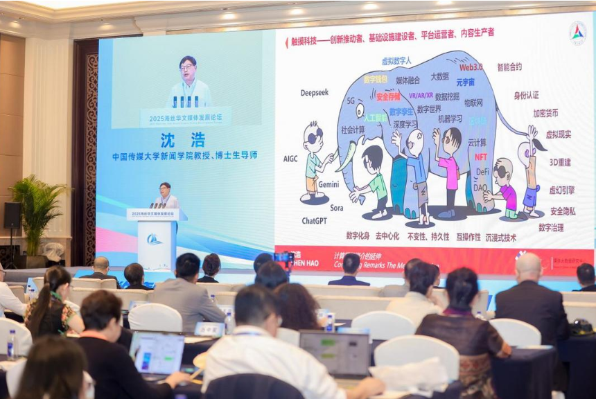中国传媒大学新闻学院教授、博士生导师沈浩就“AIGC趋势与媒体融合纵深发展”展开论述,揭示技术赋能下媒体融合的前景。
