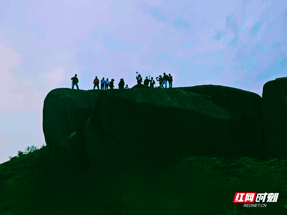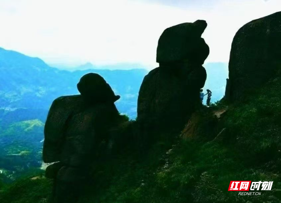 视线微转,紫顶山的轮廓在云雾之间若隐若现。此山素有“湘南武功山”之誉,山顶是广袤的高山草原,其上巨石星罗棋布,姿态万千。风起之时,云海自深谷间蒸腾而上,转瞬淹没了连绵山峦,光与影在其中追逐流转变幻,空气通透得不染一尘。放眼望去,瑰丽奇幻,令人恍如踏入仙境。