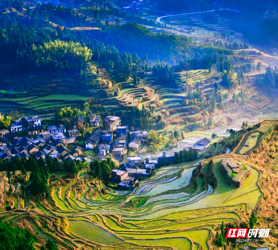 最为震撼的,是那道连接着天际与源头的风景——依山蜿蜒、层层而上的万亩梯田。时值初冬,稻谷早已归仓,裸露的田埂在晨昏的薄雾中,清晰地勾勒出大地的等高线,宛若一部用泥土与生命写就的厚重史书。那一层一层,一级一级,自山麓直至云深不知处,落差达六百米之巨。这何曾是普通的田亩,这分明是“伏羲授耕”这一古老传说最辉煌、最坚实的实证。人文始祖的智慧,经由一代代先民之手,深刻地铭刻于山水之间,成为一种活着的,仍在呼吸与生长的文化遗产。