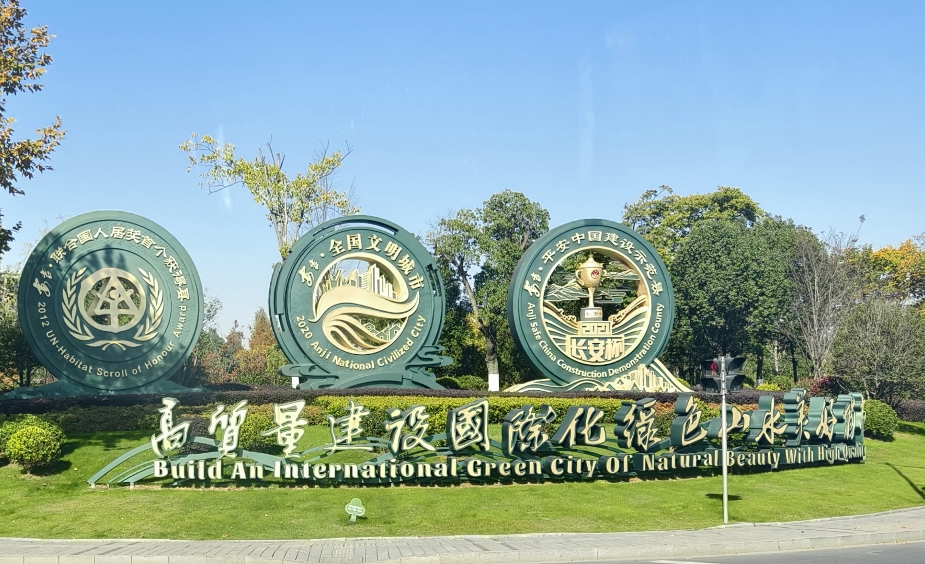 安吉县境内“七山一水两分田”,被誉为气净、水净、土净的“三净”之地,先后获评联合国人居奖、首个联合国生物多样性魅力城市、全国首个生态县、全国文明城市。多年来,安吉深入践行绿色发展理念,逐步培育发展了生态旅居、绿色家居、生物医药、新经济等一批绿色产业集群,安吉白茶品牌价值54.86亿元,椅业产业占国内市场的1/3、全国出口量的1/2,连续六年获评全国县域旅游综合实力百强县榜首,入选全国绿色发展百强县和中国县域综合竞争力百强县。