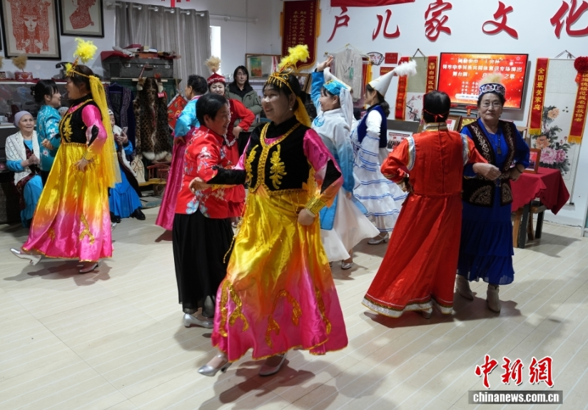 1月7日,新疆阿勒泰市红墩镇“户儿家”文化大院各民族民众与参访者载歌载舞,共话团结友谊。红墩镇位于阿勒泰市南部,距离阿勒泰市区13公里。镇辖17个行政村,由汉族、哈萨克族、维吾尔族、蒙古族等多民族组成,总人口14260人,其中少数民族占人口总数的51%。