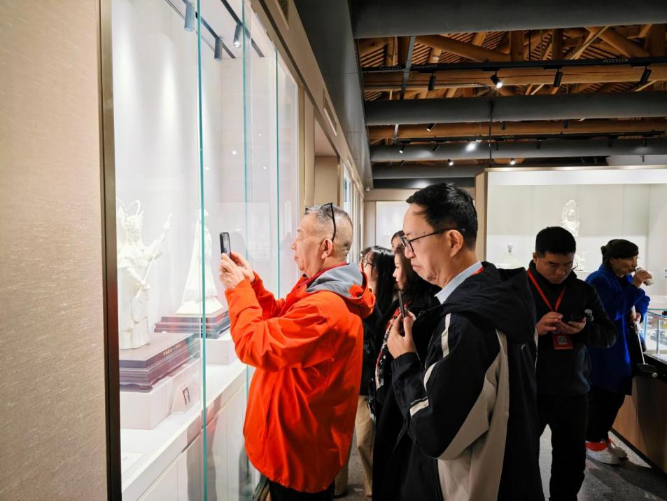 在泉州工艺美术合作社,彩扎花灯、提线木偶、德化白瓷等非遗项目及文创作品令代表们赞叹不已。《印尼焦点》主编杨仁在德化白瓷展区前久久驻足、细心拍摄。他分享道:“我自幼喜爱陶瓷,看到德化陶瓷在科技赋能下不断创新,竟能塑造出发丝般的纤毫,锻造出薄如玻璃、光可透物的瓷片,这简直堪称神奇。”
