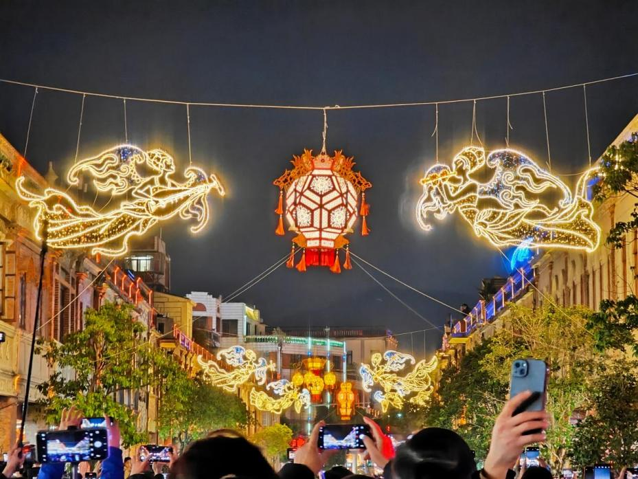 随后,代表们参与了中山路“妙音飞天”装置亮灯仪式,并欣赏了“刺桐幻幕”演出,在璀璨光影中领略了泉州古今交汇的夜色魅力。