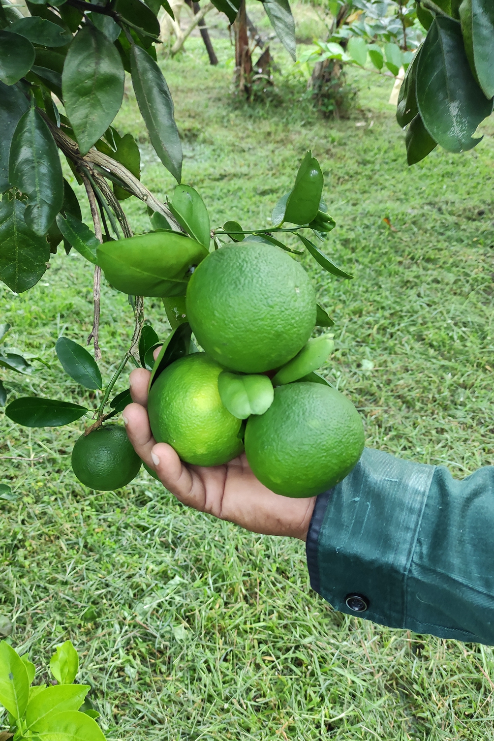 酒店的种植园门口,遇见了一体态微胖的大叔,他热情的邀请我进去看看。他的步伐缓慢而稳重,带我穿梭于种植园,丝毫不在乎脚下的积水。我穿着凉鞋,也就忍着跟着踩过去了。大叔向我展示了园子里种植的各种水果, 比如 说早餐用的柠檬。