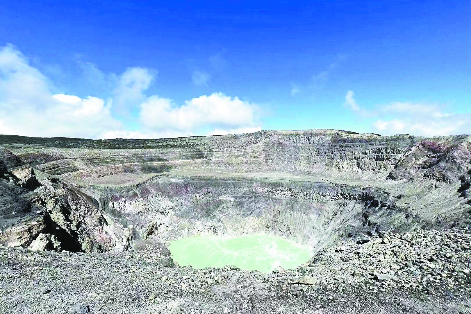 圣安娜火山口湖呈奶绿色。