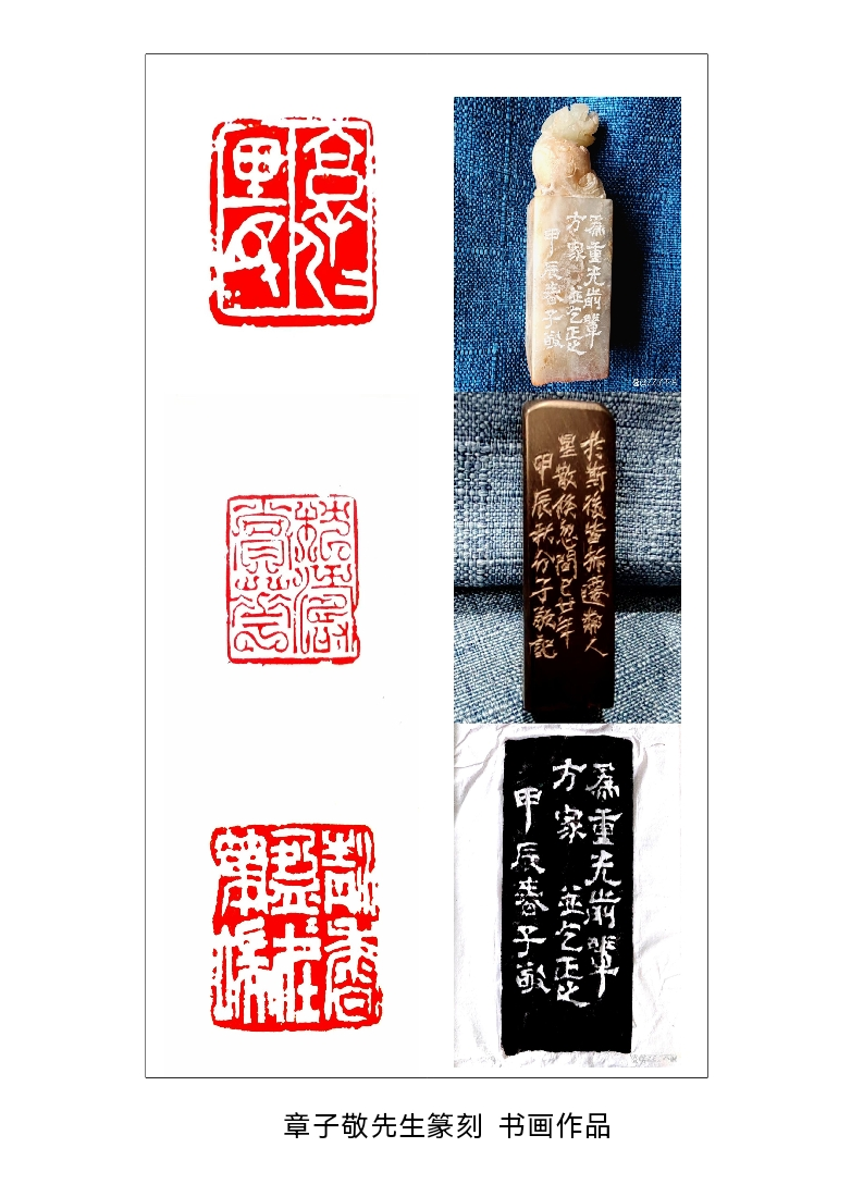 章子敬,1968年生于上海,学者、篆刻家、书画家,长期从事经学研究和篆刻、书画创作。其书画及篆刻作品在全国各类比赛中多次获奖,出版有学术专著《汉晋经学史》、篆刻作品集《章子敬篆刻》。章子敬幼受庭训,在其父教诲下临池染翰,由宿儒辅导发蒙,于训诂、音韵、古文字多有致力,遍读五经四书。在学识上曾得周谷城、易越石指授,书画金石得益于高式熊、顾振乐等前辈亲炙。2003年5月在香港大会堂举办《章子敬、范嘉露书画金石展》,《大公报》《新民晚报》均刊专文扬誉。2011年先后参加上海春季艺博会和澳门纪念辛亥革命一百周年书画展。2012年参加上海书画院篆刻邀请展等多个重要展览。2013年于上海新天地一号馆举办《章子敬、杨惠钦书画金石展》,同时首发出版《汉晋经学史》《章子敬篆刻》,得到学术界和书画界一致赞誉。