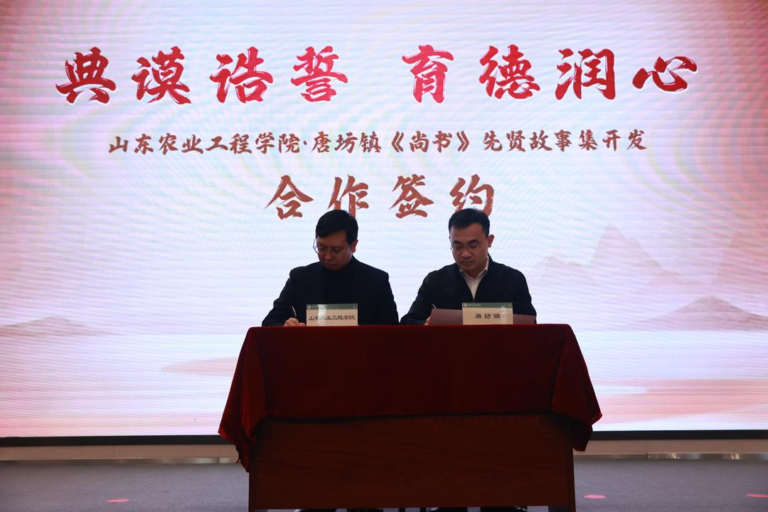 活动中,高青县唐坊镇发布了 “‘传习古训·躬行新程’——《尚书》文化周主题研学矩阵”;举行了“典谟诰誓·育德润心”——山东农业工程学院·唐坊镇《尚书》先贤故事集开发合作签约仪式,以及“乡村儒学大讲堂”特聘讲师聘书颁发仪式。