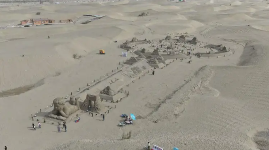 塔克拉玛干沙雕艺术园。全媒体记者 阿迪力·艾尼 摄