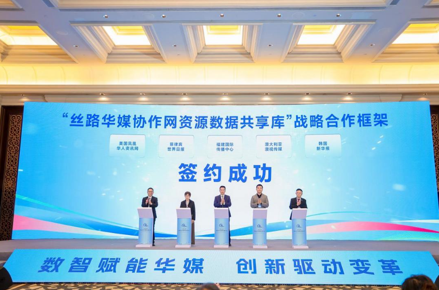论坛开幕式上,菲律宾世界日报、澳大利亚澳视传媒、美国凤凰华人资讯网、韩国新华报4家华文媒体与福建国际传播中心签订共建“丝路华媒协作网资源数据共享库”战略合作框架,希望依托福建国际传播中心的丰富的资源,为全球华文媒体提供一个高效、智能、开放的媒体内容共享库,深度挖掘福建在数字经济、绿色发展、乡村振兴等领域的优秀实践案例及成果,并通过自有渠道进行内容发布,为讲好福建故事、传播好中国声音贡献力量。